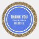 Purpurina de oro Personalizable Gracias Pegatinas de Ronda de Etiquetas con diseños de Círculo Real Azul y Blanco. Muchos otros colores disponibles. Se puede usar para una variedad de eventos desde Bodas hasta cumpleaños y otros eventos de su elección.