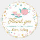 Purpurina de oro rosado Fiesta de té de cumpleaños gracias Pegatina redondo clásico