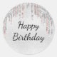Pegatina Redonda Purpurina de plata gotea feliz cumpleaños rosado