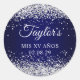 Pegatina Redonda Purpurina de plata Marina Azul Mis XV Anos