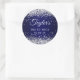 Crea tus propios pegatinas redondos clásicos de la fiesta de 15 años de quinceañera. Girly finge purpurina plateado brillante sobre un gradiente oscuro de color azul marino. Personalizar los estilos de letra para crear tu propio diseño para su celebración especial. Una caligrafía clásica y elegante, acompañada de un tipo de letra serif con todos los mayúsculas. El purpurina y los destellos son arte digital que se imprimen como una foto.
