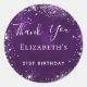 Pegatina Redonda Purpurina de plata morada de fiesta de cumpleaños