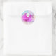 Pegatina Redonda Purpurina de rosas rosadas rosadas con marco purpu