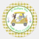 Pegatina Redonda Purpurina Elefante y Monkey Golf Baby Shower Retur