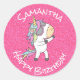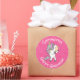 Pegatina Redonda Purpurina Fiesta de unicornio Pastle Pink