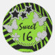 Pegatina Redonda Purpurina Green Black Silver FAUX Sweet 16 Pegatin