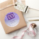 Pegatina Redonda Purpurina morado caído, 70 cumpleaños gracias