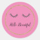 Pegatina Redonda Purpurina Oro Rosa Girly Black Eyelashes