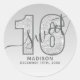 Purpurina Plata Script Dulce 16 Cumpleaños Pegatina Clásico Ronda. Este diseño de moda se acentúa con un tono purpurina en un entorno sombrío. Personalice este diseño personalizado con sus propios detalles.
