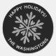 Un pegatina de copos de nieve purpurina negro y plateado falso. Personalízalo con tu apellido.Diseñado para ti por Blackberry Boulevard.