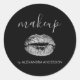 Pegatina Redonda Purpurina plateado y maquillaje con lápiz labial e