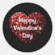 Pegatina Redonda Purpurina rojo enciende el corazón feliz día de Sa