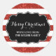 Feliz Navidad pegatinas de nombres personalizados en el purpurina rojo festivo efecto rayas patrón con detalles en blanco y negro.