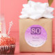 Pegatina Redonda Purpurina Rosa caído, cumpleaños 80 gracias