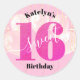 Pegatina Redonda Purpurina rosa dulce guión de globos de cumpleaños