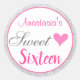 El purpurina de bonito y de color rosa y plata brillante brillante princesa Sweet 16 pegatinas redondos clásicos. Puede añadir fácilmente el nombre de su elección y cambiar el color y el tipo de letra utilizando la opción personalizar.