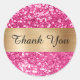 Purpurina estilo confetti rosa brillante y brillante, emparejado con una tira de Relieve metalizado metálico de color dorado fino y brillante para tu mensaje de texto de agradecimiento. El texto incluye un guión moderno de caligrafía que se puede personalizar. La lujosa banda de Relieve metalizado falso shimmer y purpurina son imágenes creadas digitalmente que se imprimen como una foto.
