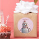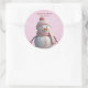 Pegatina Redonda Purpurina rosado Winter Snowman Baby Shower
