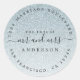 Moda, moderno y brillante retorno boda se dirige al pegatina redondo clásico con el texto el futuro Sr. y la Sra. en caligrafía de escritura manuscrita elegante y negra en un fondo oscuro purpurina plateado. Simplemente agrega tu nombre y dirección. Diseñado exclusivamente para usted por Happy Dolphin Studio. Si necesita ayuda o productos coincidentes, póngase en contacto con nosotros en happydolphinstudio@outlook.com. ¡Estamos encantados de ayudarle a hacer de su boda el día más hermoso!