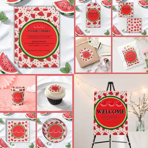 Celebra tu pequeña con la colección de Baby Shower Purpurina Modern Watermelon. Con una divertida mezcla de diseños de sandía brillante y elementos contemporáneos, es perfecto para una celebración divertida, fresca y elegante. Si necesita cualquier otro producto o personalización que coincida, por favor envíe un mensaje a través de Zazzle.