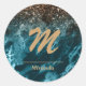 Pegatina Redonda purpurina verde azulado Blue Agate Monograma perso