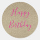 Pegatina Redonda Purpurinoso Gold Hot Pink Happy Birday Classic