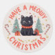 Pegatina Redonda Purrfect Meowy Navidad Gato Negro