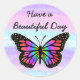 Pegatina Redonda Que tenga un hermoso día | Mariposa Morada