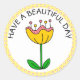 Pegatina Redonda Que tengan un día hermoso y una flor amarilla sing