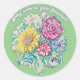 Flores vibrantes, entre ellas un girasol y un rosa, dominan el frente de la pintura con sus pétalos coloridos y luminosos. Los trazos ligeros y de sketch le dan a la pieza un toque lúdico y dinámico, con una serie de verdes que crean un ambiente animado para los florecientes.