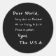 Pegatina Redonda Querida Carta De Disculpa Mundial De Eeuu Anti-Tru