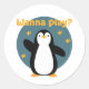 Pegatina Redonda Quiero jugar a Kawaii divertido lindo pingüino