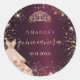 Pegatina Redonda Quinceanera burgundy rosa dorado vestido guión nom