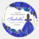 Pegatina Redonda Quinceanera floral azul real y dorada