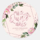 Fiesta Quinceanera Rosa Relieve metalizado dorado Rubor Floral rosa Pegatina redondo