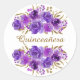 Pegatina Redonda Quinceanera, Rosa morado y hoja de oro