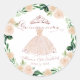 Pegatina Redonda Quinceanera Rosa Oro Rubor Gown Floral rosa