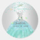 Pegatina Redonda Quinceanera Turquoise Purpurina Gown