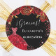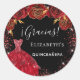 Pegatina Redonda Quinceanera vestido rojo negro flores gracias