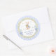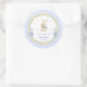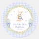 Pegatina Redonda Rabbit Blue Gingham Baby Shower Thank You