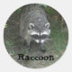 Este pegatina presenta una gran captura de este curioso pequeño mapache que salió de algunos arbustos en un parque. Los ojos turbios en esa cara enmascarada con largos bigotes hacen que este mapache parezca misterioso.