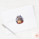 Pegatina Redonda Raccoon de invierno con una tarta de cumpleaños nú