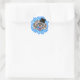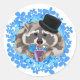 Pegatina Redonda Raccoon en un gorra con una taza de café