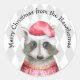 Pegatina Redonda Raccoon lindo en Navidades de Red Santa Hat