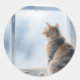Pegatina Redonda Rainy Window Watercolor Tabby Cat