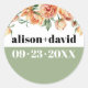 Este pegatina boda circular exhibe una delicada rama adornada con rosas de melocotón suave y hojas verdes de salvia colocadas en la parte superior. La adición de acentos de color verde sabio en la parte inferior aumenta la sofisticación de todo el diseño, armonizando perfectamente con la tipografía audaz del texto mínimo pero elegante. La cobertura se ha diseñado utilizando algunos activos de Freepik.com