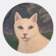 Hermoso gato blanco de ojos azules con un fondo nocturno. Místico.