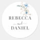 Pegatina Redonda ramo de flores de acuarela azules polvorientos rús
