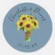 Pegatina Redonda Ramo de girasol acuarela y boda azul