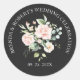 Pegatina Redonda Ramo de Rosas Rosadas Pálidas sobre Lino Negro